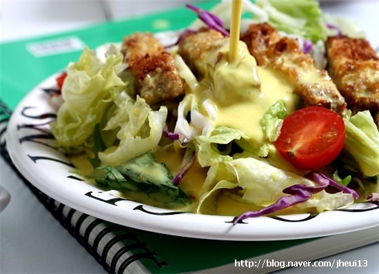 카레드레싱재료 각종샐러드채소2인분카레드레싱 카레백세카레1작은술 플레인요쿠르트 1통100그람 식초와 꿀 1큰술씩 소금흰후춧가루약간이번엔 카레드레싱분량의 재료를 미니믹서에 넣어 살짝 돌려주면 끝약간...