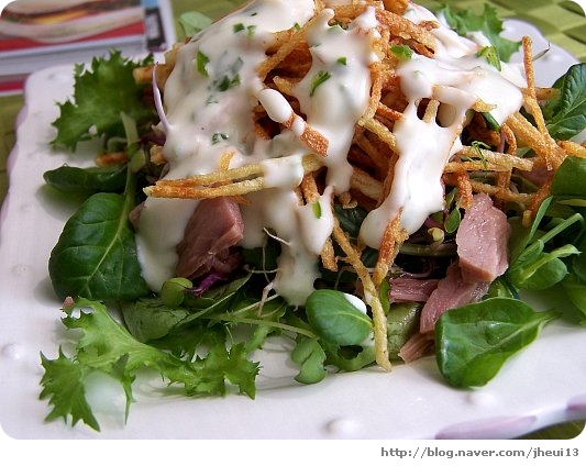 감자채튀김 크림소스샐러드재료 감자소1개 베이비채소캔참치 적당량감자밑간 옥수수가루 12큰술 약간의 소금과 흰후춧가루크림소스 마요네즈 3큰술 플레인요쿠르트요플레 클래식 2큰술 레몬즙 1큰술 크림치�...