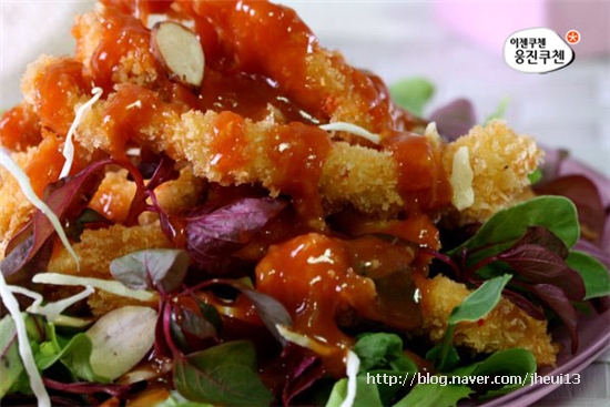 한끼 식사로도 충분한 샐러드치킨너겟 샐러드예요너겟 자체만으로도 한끼 훌륭한 간식이 되지만샐러드 채소와 소스를 곁들이면 각종 영양소 충분한 끼니로도 손색이 없습니다치킨너겟 샐러드재료 닭가슴살 2�...