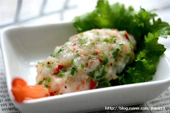 새우구이재료 새우 5마리 녹말가루 적당량새우밑간 청주 05큰술 흰후춧가루 약간고명 다진새우 5마리분 잘게썬청홍고추다진대파 05큰술씩 다진마늘 05작은술 참기름05작은술 설탕 03작은술 소금후춧가루 약간요�...