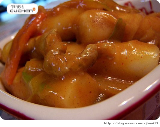 카레떡볶이재료 떡볶이떡 300그람떡볶이떡으로 18개 정도 돼지고기등심 외 60그람양파 14개 당근 15그람약간 양배추 70그람채썬것 작게 한줌 대파 13대 올리브유 112큰술쇠고기육수 1컵없으면 그냥 물카레소스 카레�...