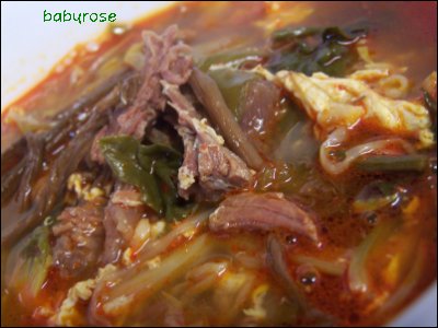 야채와 고기가 듬뿍 들어간 얼큰한 국물맛이 즥이죠 추운 겨울에 뜨끈하게 끓여먹기 좋은 음식 같아요구정때 먹고남은 나물종류 활용합니다 육개장고기와 고사리 도라지 숙주 시금치 나물 각각 100그람 정도씩과...