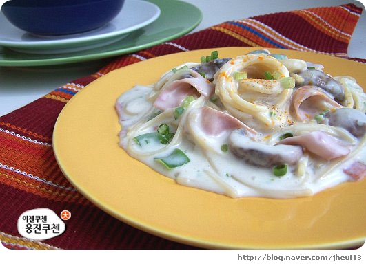 감자크림소스 스파게티2인분재료 파스타 2인분 감자 1개중 양파 12개중 양송이버섯 5개 슬라이스햄 5장피망 13개중 청량고추 1개 쪽파 2대 버터 1큰술 올리브오일 112큰술 우유 112컵생크림 4큰술 소금 흰후춧가루 약...
