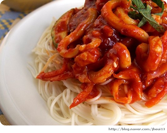 오징어볶음면2인분재료 오징어 1마리중 몸통만 호박 15개 양배추와당근 30그람씩쫴끔 양파 15개 깻잎과 포도씨와 참기름소금 약간고추장양념장 고추장 5큰술 고춧가루 3큰술 다진마늘 112큰술 참기름 12큰술 간장 ...